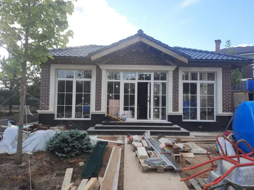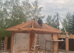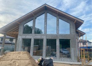 Полный цикл строительства: Геодезия, проект, фундамент, коробка (стены, перекрытия, кровля), остекление.